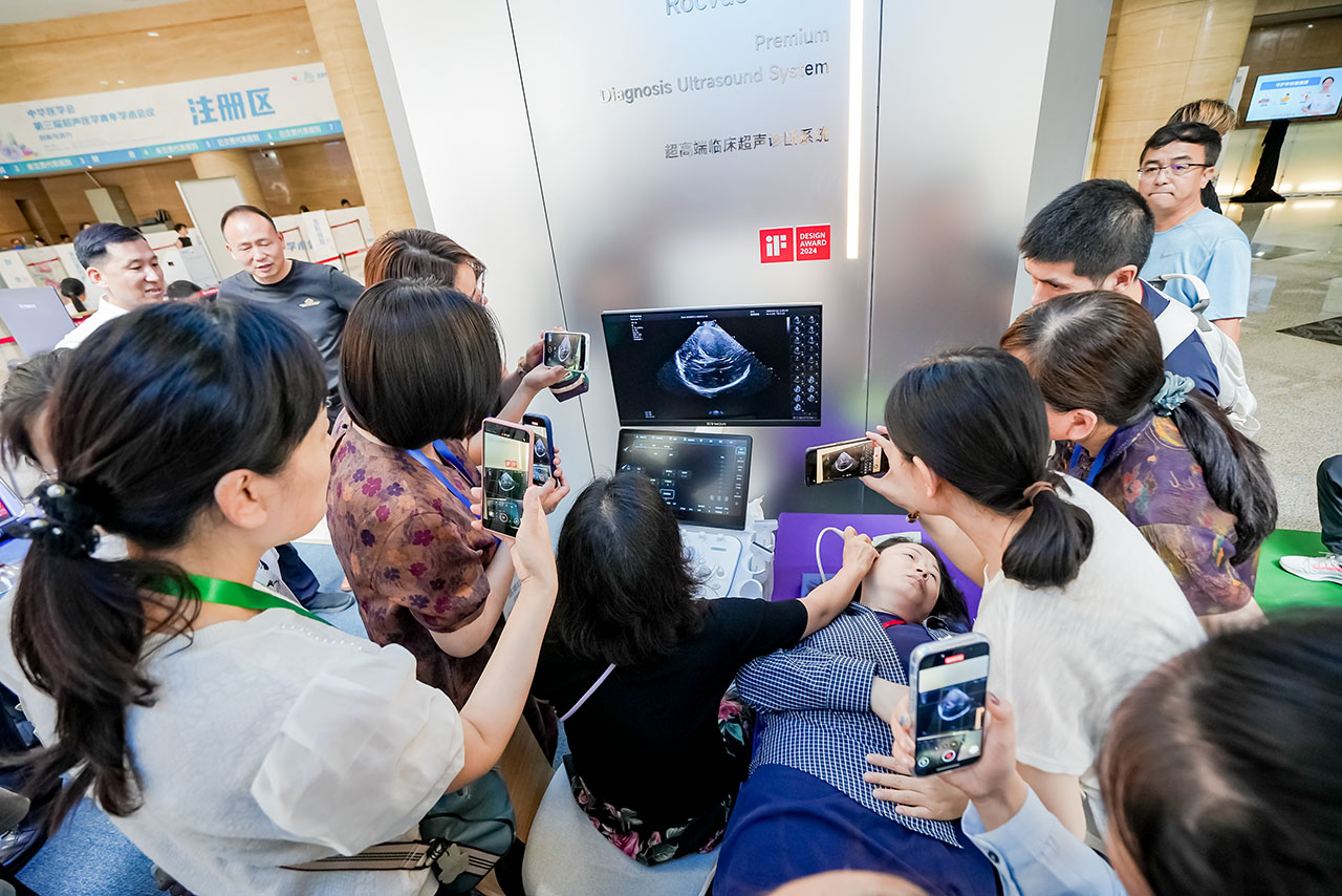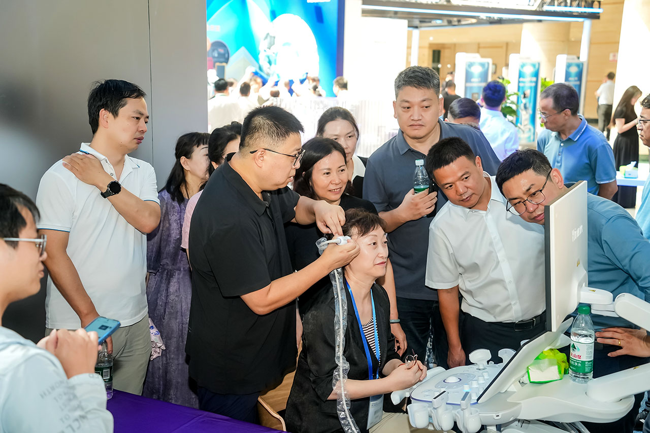 技术展示区热度爆棚,众多与会青年医生汇聚鲲为公司展台,争相观摩体验: